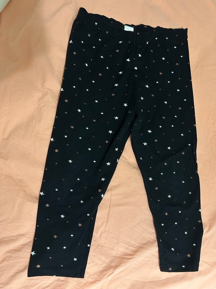 Siyah, yıldız desenli, elastik bel bantlı kız çocuk taytı. Trendy ve rahat sokak stili için uygundur. ⭐