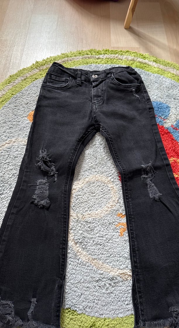 Kız Çocuk Siyah Yırtık Denim Pantolon