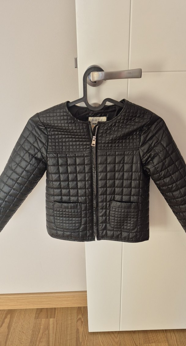 Fermuarlı önü ve yuvarlak yakası ile siyah, fitted ceket. Kısa boy ve kapitone deseni modern bir sokak stili sunar, günlük kullanıma uygundur. 6-7 Yaş