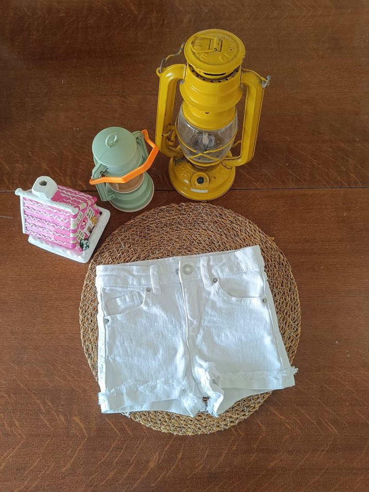 Yumuşak kumaştan yapılmış, düğme ve fermuarlı beyaz kadın şort. Ön ve arka cepleri vardır, hafif yırtık detaylı rahat kesim. ☀️lefties