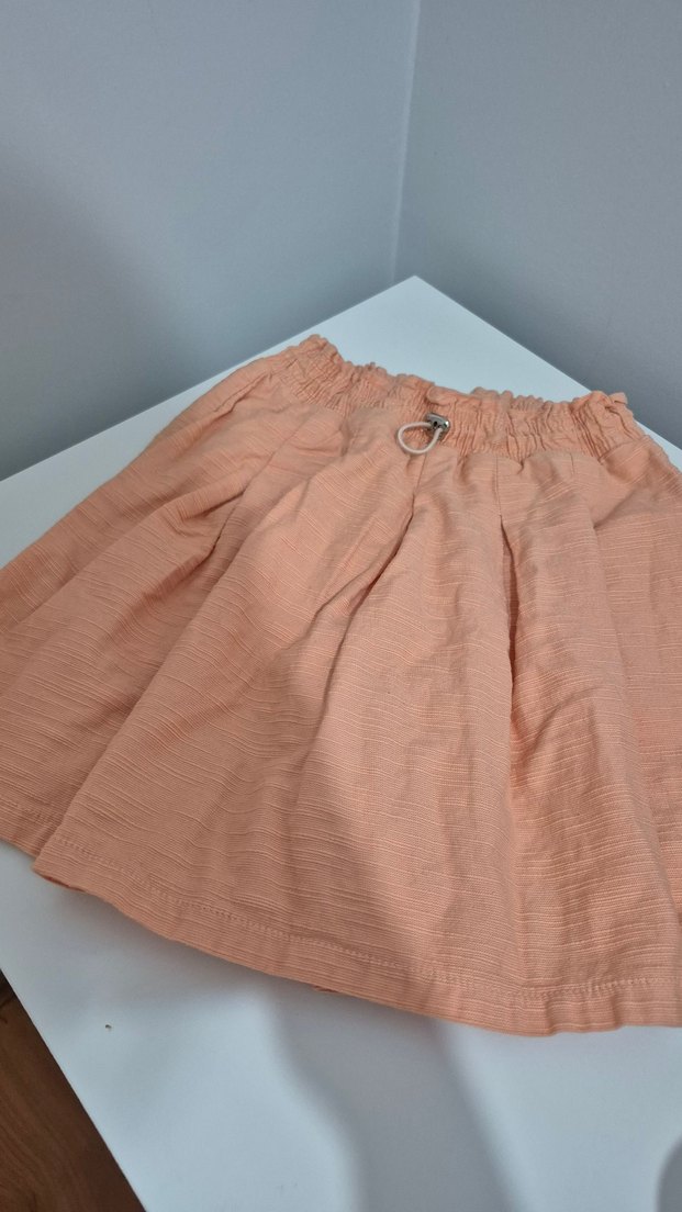 Kız çocukları için bej renkli, bol kesim şort- etek. Pastel tonları ve sade tasarımıyla sokak stiline uygun.