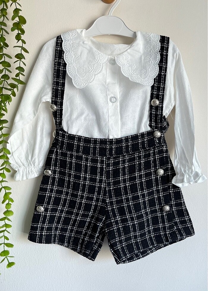 Kız çocuk şortlu salopet takım