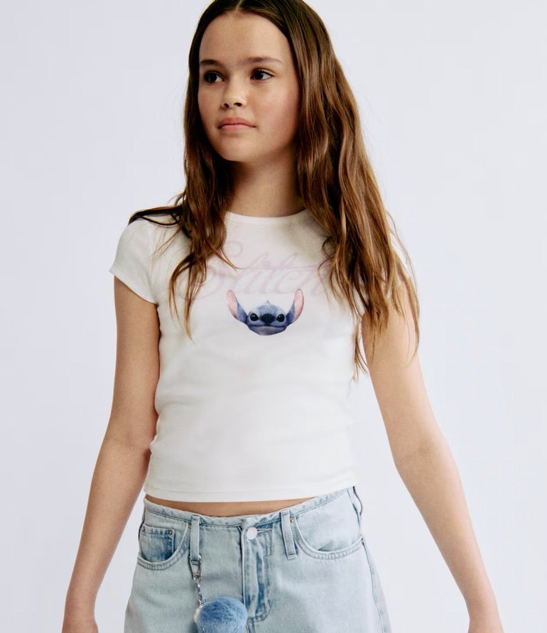 Kız Çocuk stitch baskılı Tişört 14 yaş