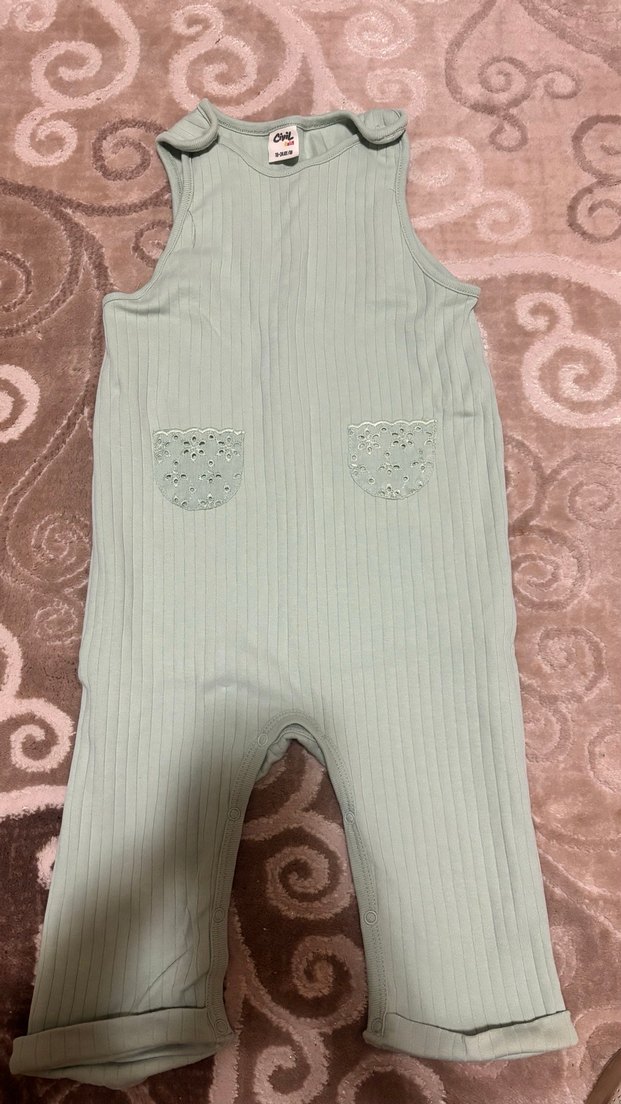 Su yeşili pastel renkte, dantel detaylı ön cepli, kolsuz yapılmış fitted tulum. Yumuşak ve rahat bir kullanım sunar. Ürünü aldığımda yıkayıp kaldırmıştım daha ayı büyük olduğu giydirmemiştim taşınırken hurcun içinde kalan kıyafetlerden temizdir hiç giyilmedi gönül rahatlığıyla alabilirsiniz ürün de iade yoktur.