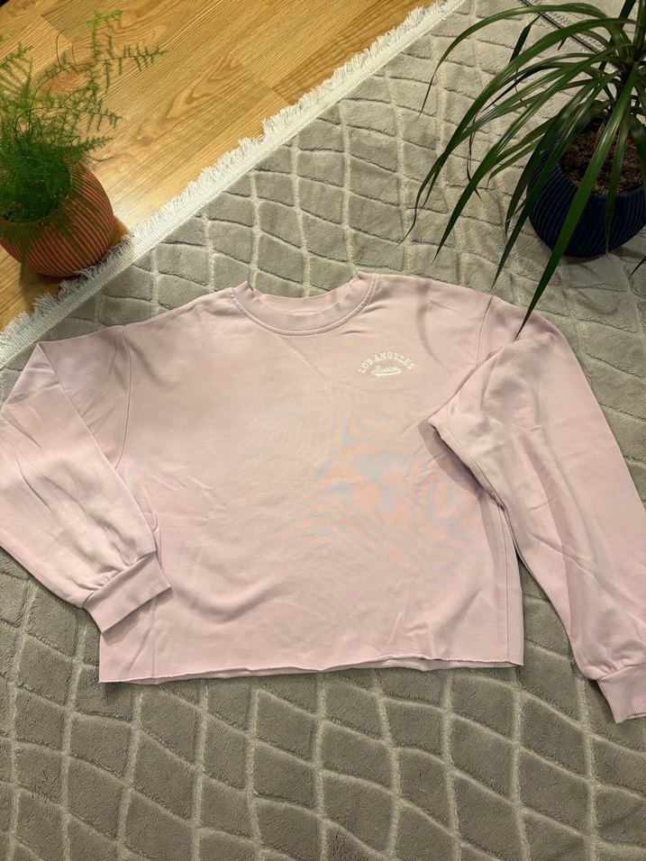 Uzun kollu, yuvarlak yakalı ve bol kesim lila rengi sweatshirt. Yumuşak ve sıcak kumaştan, rahat sokak stili için ideal.