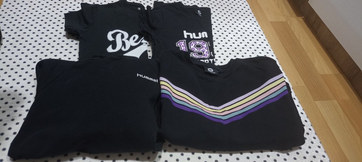 hepsi orijinaldir. kusuru yoktur. iki sweatshirt Hummel marka tişörtler den biri Hummel diğeri Kartal yuvası. 8-10 yaş aralığında. ölçüler hakkında detaylı bilgi için yazabilirsiniz