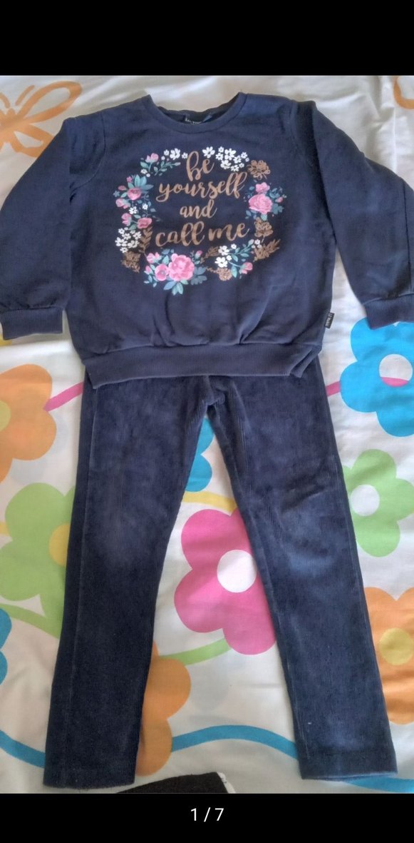 Geçen kış birkaç defa giydirdim küçük kaldı. Lekesi ve hasarı yoktur. Uzun kollu sweatişört ve kadife tayt takım.