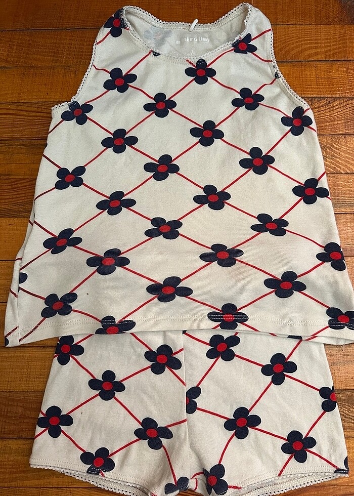 Mini Rodini marka. 4-5 yaş olarak etiket basılmış. Fakat benim kızım 2-4 yaş olarak kullandı. Şu an 5 yaşında küçük geliyor örneğin. Takım olarak giydiğinde hep övgüler aldı. Çok şirin duruyor. Şort lastiği anneanne eliyle 2 yaşa uysun diye daraltıldı, çıkarılabilir. Son fotoğrafta belli belirsiz meyve lekesini görebilirsiniz. Organik pamuk, yıka yıka giy, solmaz desenleri var.