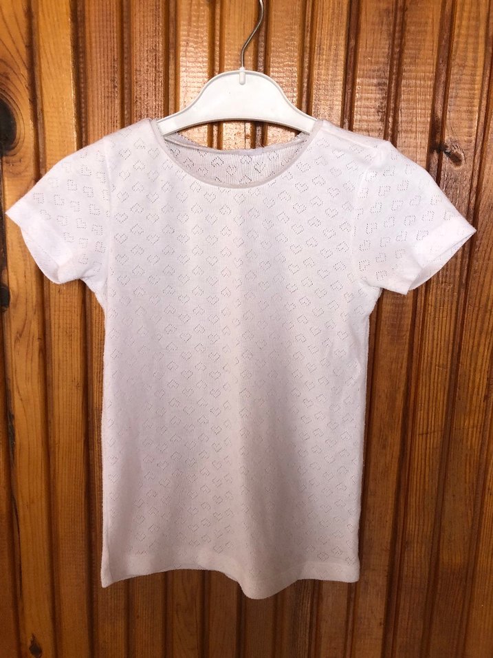 beyaz renkli kalp desenli 7-8 yaşa uygun kız çocuk tişört likralı pamuklu bisiklet yaka kısa kollu çorap kısa boy bilekleri tüllü , tişört koltukaltı ölçüsü 28 cm boy 41 cm