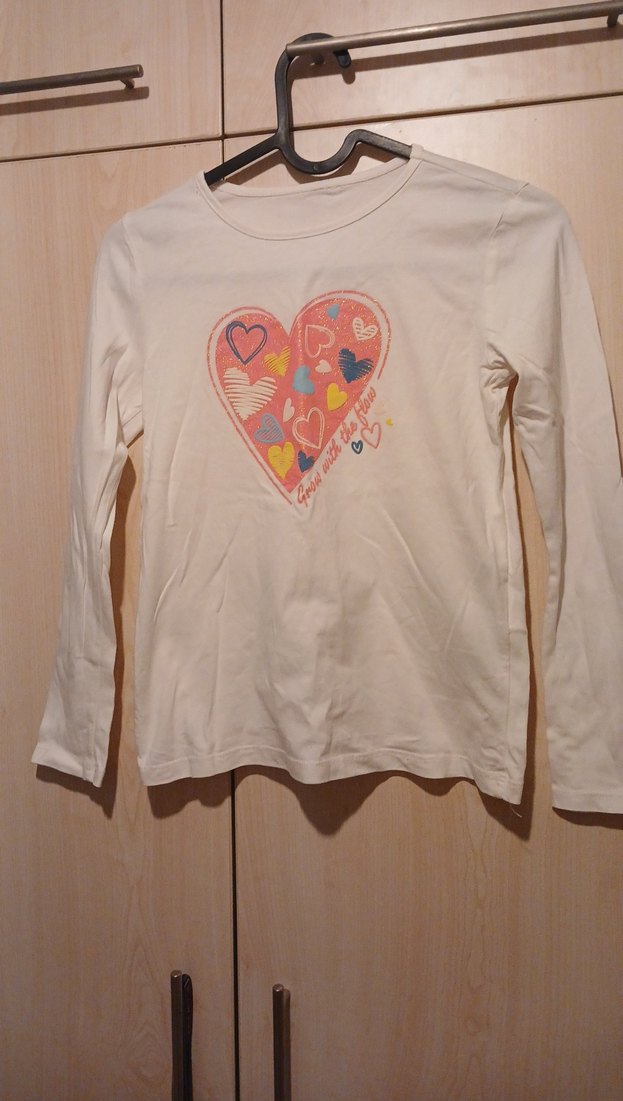 Pamuklu, beyaz uzun kollu, bol kesim tişört, renkli kalp baskısıyla bohem ve retro sokak tarzı sunar. Effortless chic görünümlü. ❤️