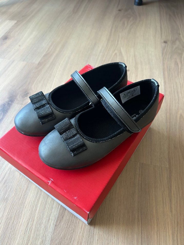 tokalı bantlı ve burun kısmında fiyonk detaylı kız çocuk babet ayakkabısı