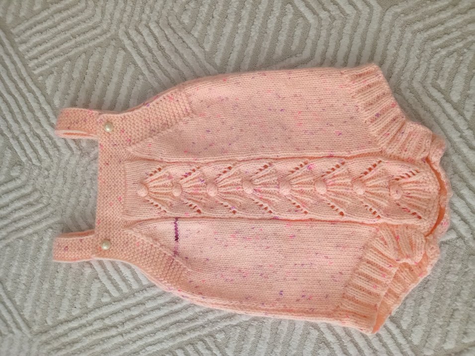 El örgüsü sıfır kollu bebek tulumu