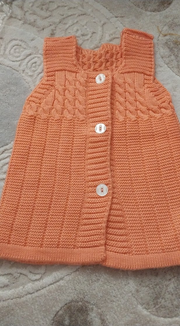 Düğmeli, kolsuz, örgü triko kız çocuk yeleği. zıbın hediye.