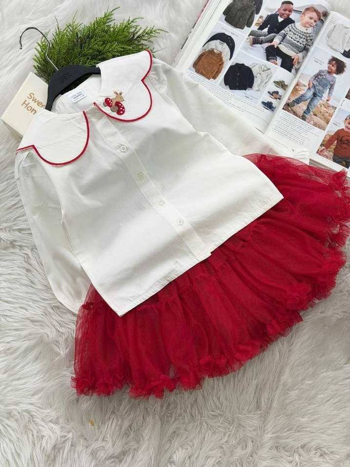 Kız Çocuk Tül Etekli Gömlek Takım