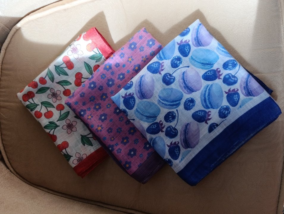 80/80 pamuk keten.Çiçek, kiraz ve makaron desenli, dantel detaylı renkli kadın fularları. Kumaş dokusu ve klasik Paris tarzını yansıtıyor.