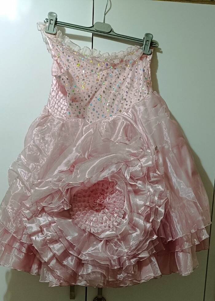 GELİNCİK ABİYE KIZ çocuk tüllü saten abiye 8-9 yaş kızlar için okul töreni nişan vs yazlık abiye altları fırfır tüllerle dikilmiş eteklerinde çiçek düğmeleri en altı saten ve yarım kol yakası PAYETLERLE süslü tek omuz arkası ince lastikli ve saten etek önünde tülden kocaman bir çiçek var üst bedeni tülle bezenmiş gayet şık bir elbise sıfır üründür sadece etiketi yoktur arkası ince lastik fakat üstünden tekrar lastik geçmesi gerek beklediği için kastikleri esnemiş alındı büyük olduğu için 1 kez bile giyilmedi ölçüleri sorabilirsiniz bakıp öyle alınız lütfen iade yoktur