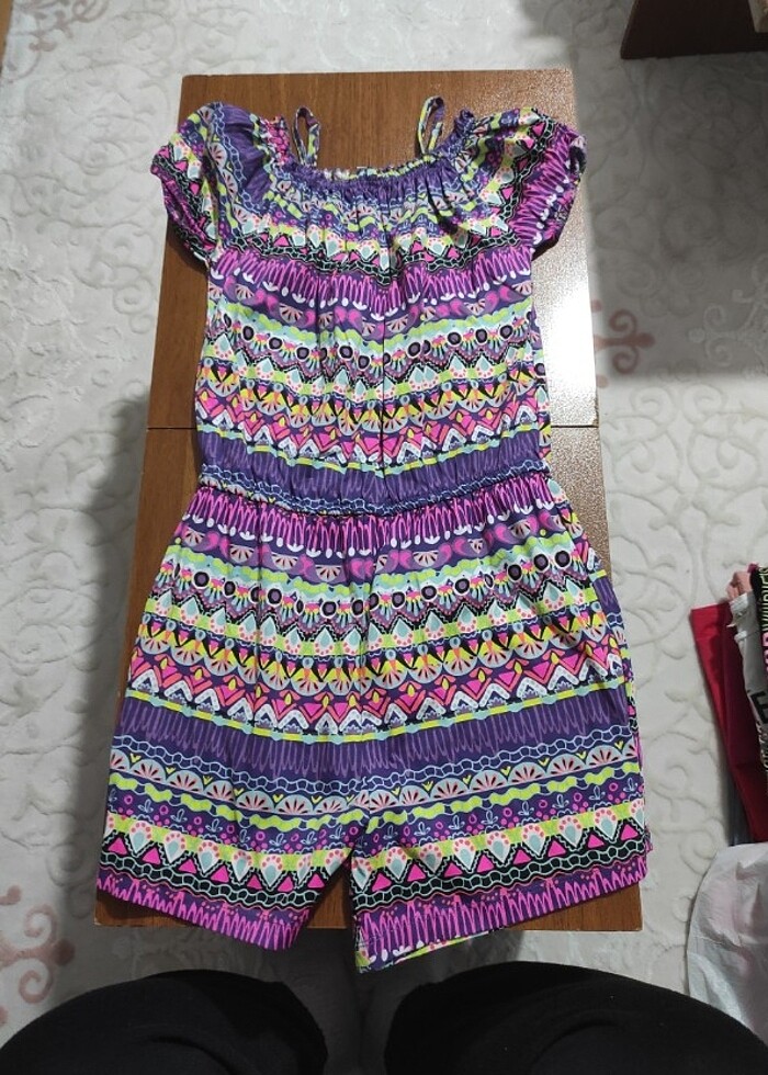 Omuz detaylı şort tulum. Neredeyse sıfır ayarında, az ve temiz kullanılmıştır. Herhangi bir yerinde bir kusur yoktur. Beden: 12-13 yaş Boy: 152-156 cm