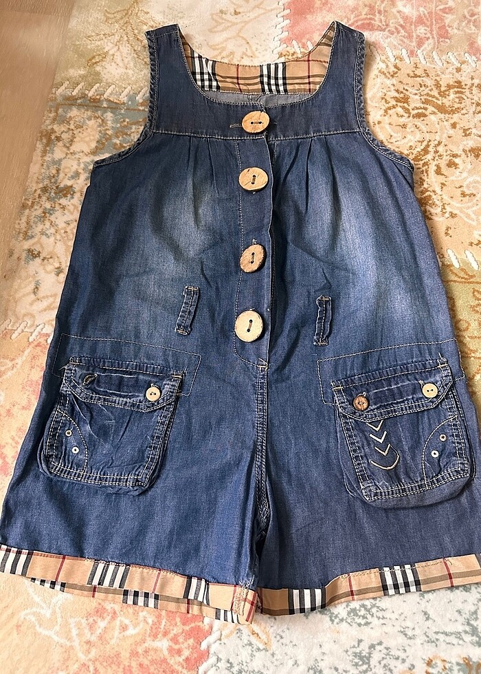 Kız çocuk tensel kot kumaştan şortlu tulum 10 yaş için zayıfsa 11 yaşa olur. Tertemiz iki kez giyilmiş
