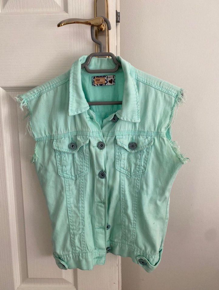 Dar kalıp. su yeşili ceket. 10-12 yaş çocuk ya da xs bedene uygundur.