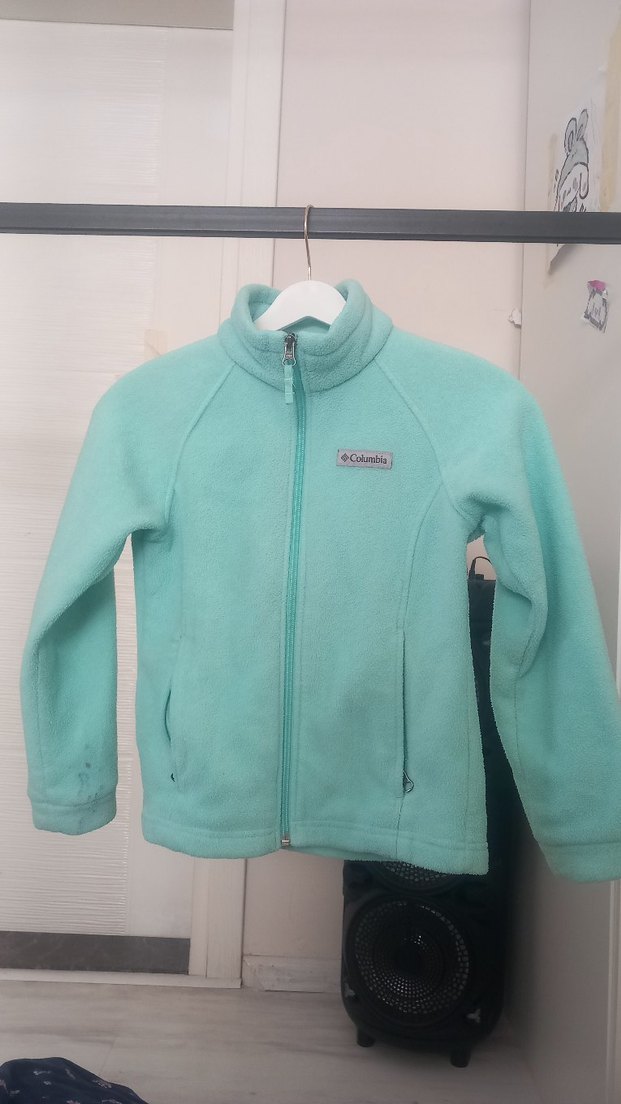 Pastel turkuaz renkli, fermuarlı ve yuvarlak yakalı kız çocuk ceketi, yumuşak ve sıcak kumaştan, rahat kesimle sunulmuştur.