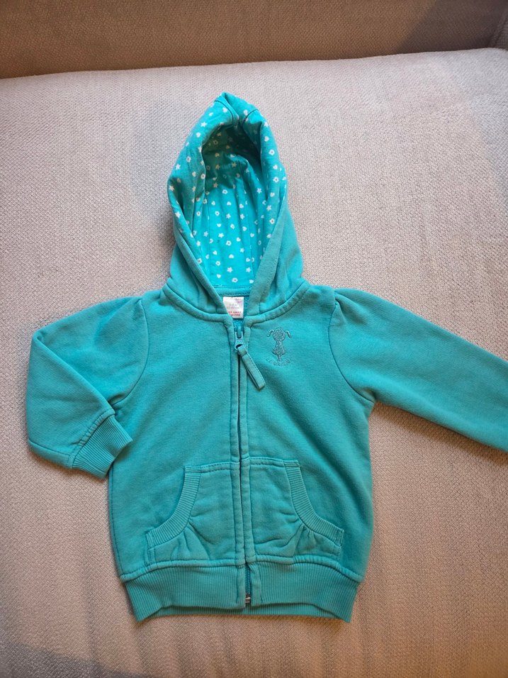 Turkuaz renkli, kapüşonlu ve fermuarlı kız çocuk sweatshirtü. Noktalı iç kapüşonlu, uzun kollu, yumuşak ve sıcak kumaştan, sokak tarzına uygun.