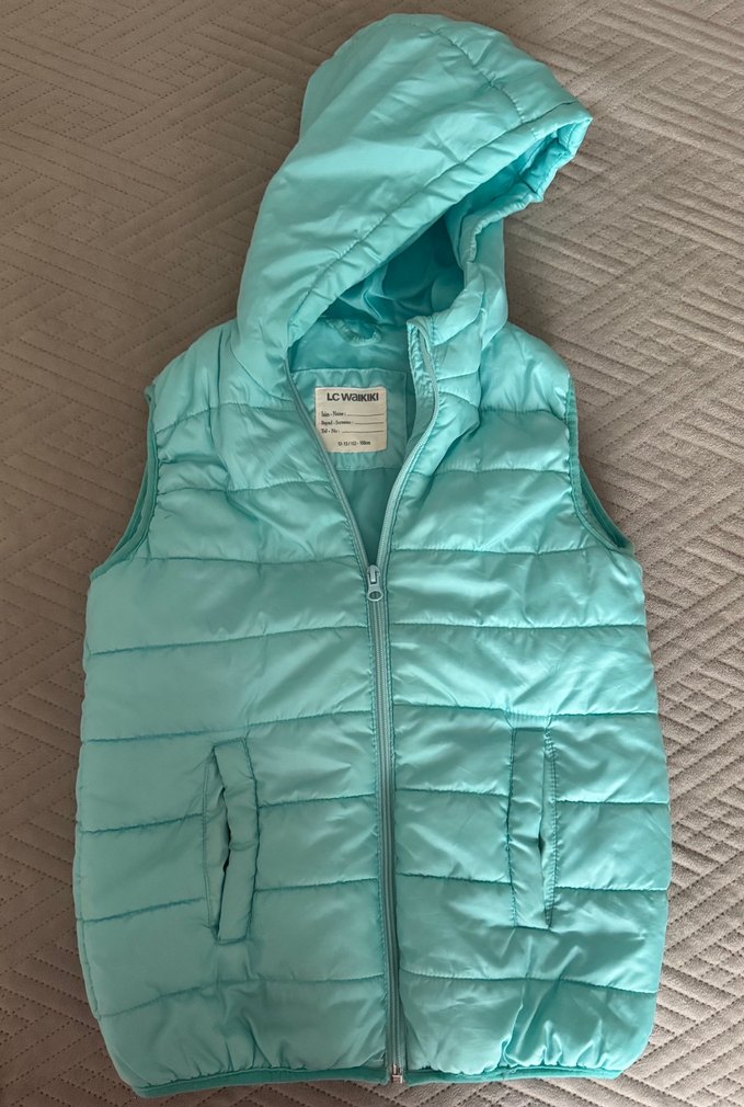 Turkuaz renkli, kapüşonlu ve fermuarlı kız çocuk yeleği. Yumuşak ve sıcak kumaştan, fitted kesimle günlük rahat kullanıma uygun.