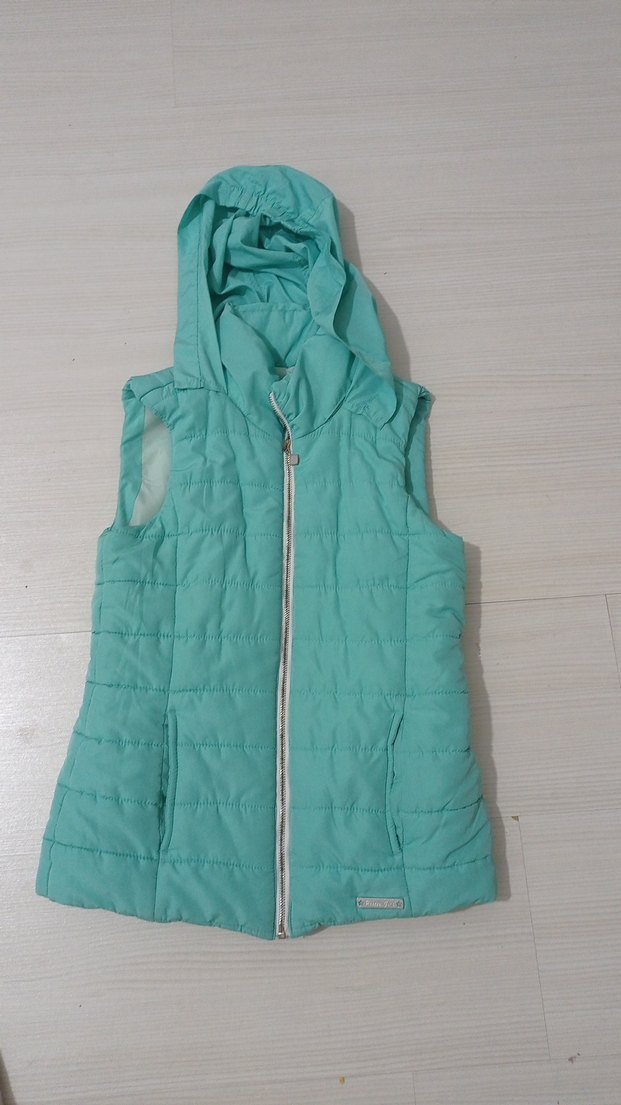 Kız çocukları için turkuaz renkte, kapüşonlu ve fermuarlı yüksek yakalı yelek. İnce kesim ve sıcak tutan yumuşak kumaşlı, günlük rahat kullanıma uygun.