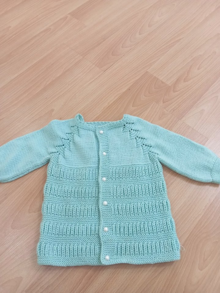 Turkuaz renkli, uzun kollu ve bol kesim kız çocuk triko hırka. Yumuşak örgü kumaştan, düğmeli ve desensiz tasarıma sahip.