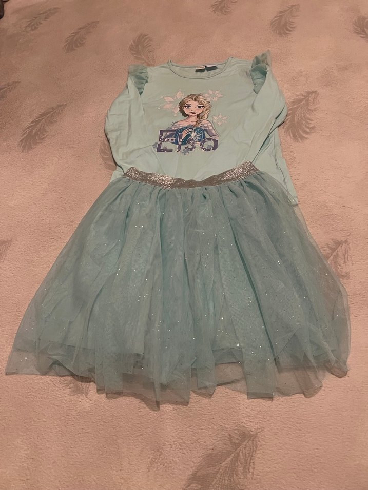Kız Çocuk Turkuaz Uzun Kollu Parlak Elbise orijinal frozen lisan