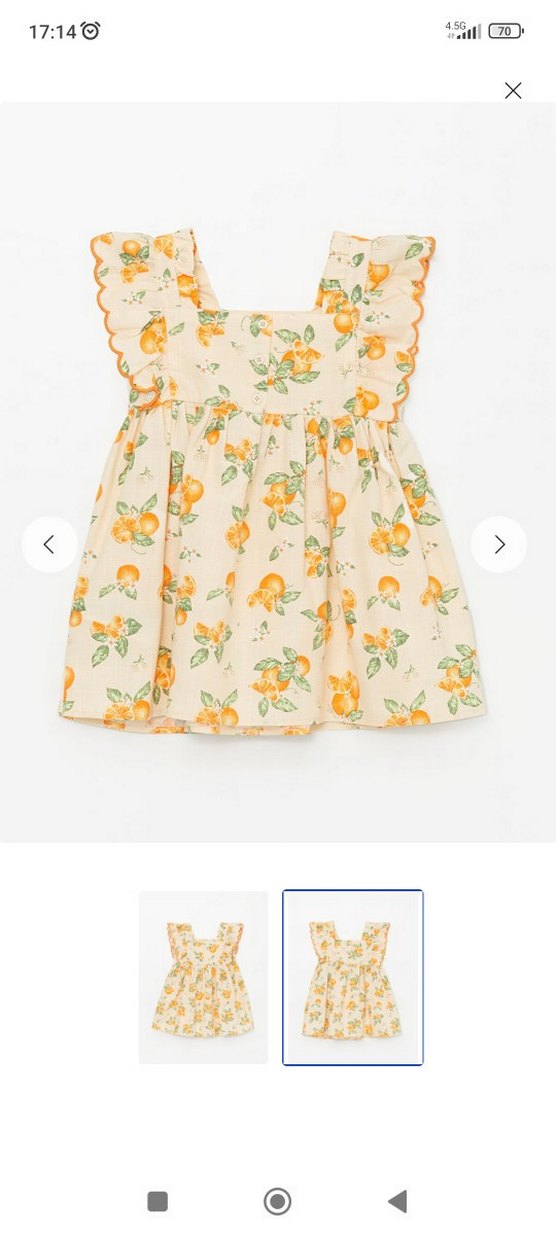 Kolsuz ve kayık yaka kız çocuk elbisesi, turuncu baskı ve fırfır detaylarıyla bohem tarz sunar. LC waikiki çok tatlı bir elbise sıkıntısı yok küçük geldiği için satışta 4 5 yaş