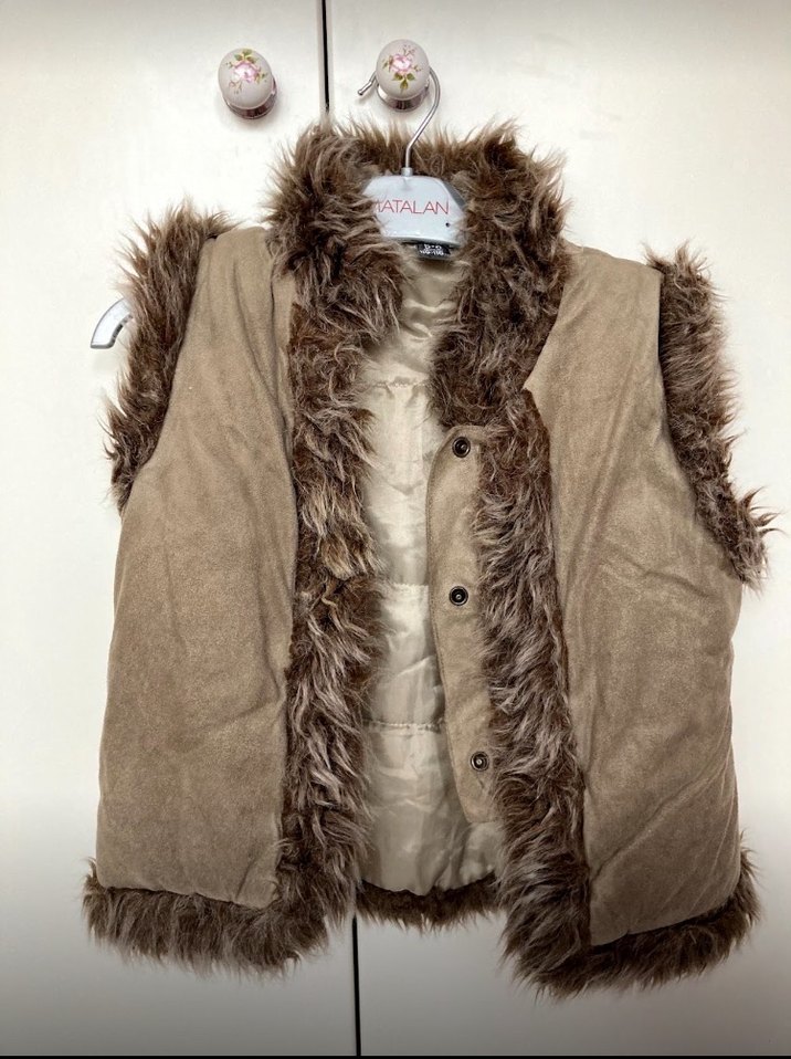 Kız Çocuk Tüylü Kahverengi Suet Yelek-5/6 Yaş (Sadece 1 kere giyilmiştir)