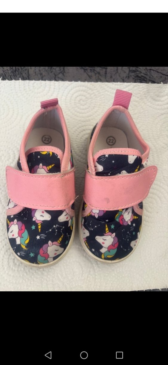 Kız çocukları için renkli unicorn desenli, cırt cırtlı spor ayakkabı. Kauçuk tabanı rahat ve dayanıklıdır, günlük kullanım için uygundur.