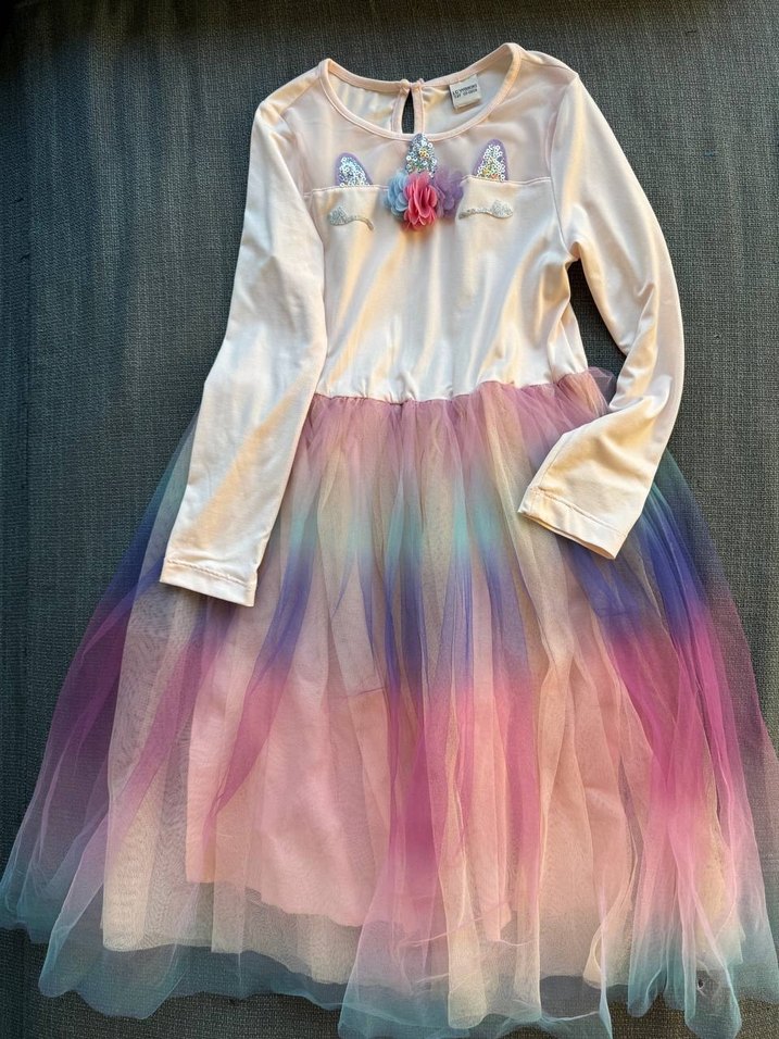 Kız Çocuk Unicorn Uzun Kollu Renkli Elbise