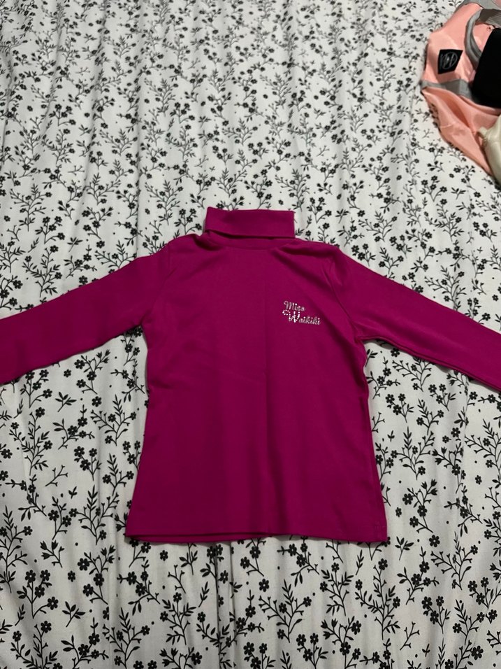 Pembe, uzun kollu, balıkçı yaka kız çocuk sweatshirtü. Yumuşak ve sıcak kumaştan, baskılı