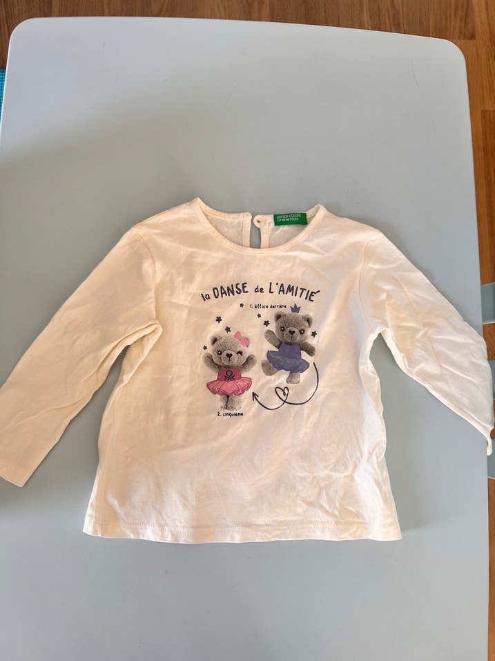 Benetton 18-24 ay Pamuklu, beyaz renkli, uzun kollu, bol kesim kız çocuk tişörtü, üzeri dans eden iki ayı baskılı, rahat ve şık bir sokak stili sunar. Son fiyatlardır. İndirim talebi göndermemenizi rica ediyorum. Toplu alımı da kabul etmiyorum. Toplu satışlar iptal ediliyor.