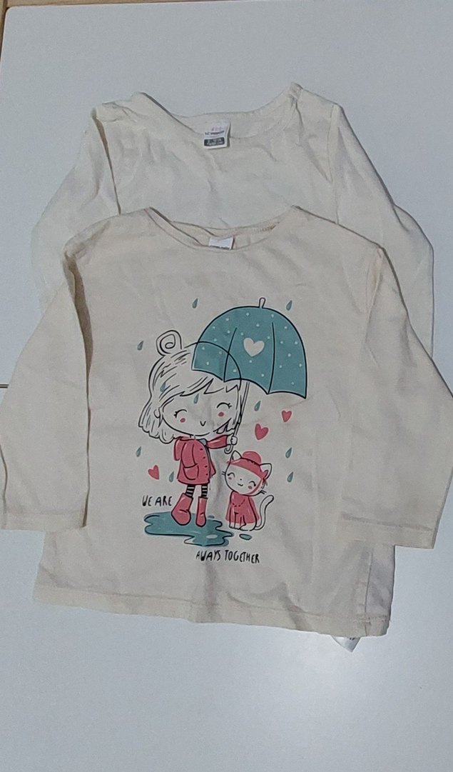 Pamuklu, bol kesim kız çocuk uzun kollu body. Şemsiye altında kız ve kedi baskısı bulunur. Beyaz pastel renk, yuvarlak yaka. 9-12 aydır.