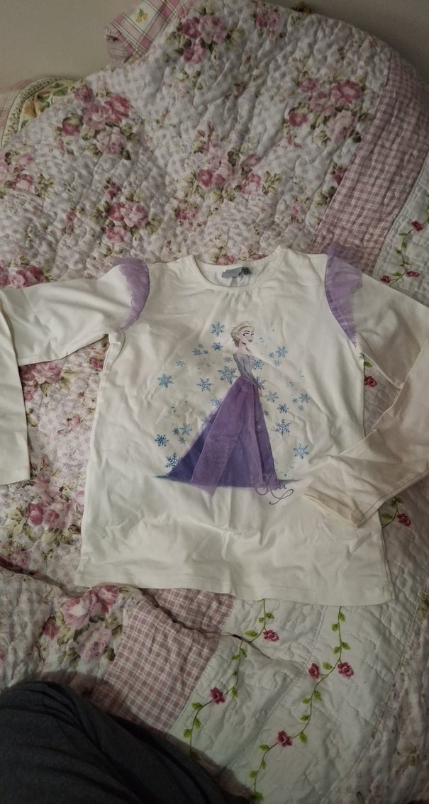 Beyaz pastel renkte, baskılı karakterli, uzun kollu, vücuda oturan kız çocuk tişörtü. Omuzlarda fırfır detayları ve yuvarlak yaka bulunur. Yumuşak ve sıcak kumaştan üretilmiştir.