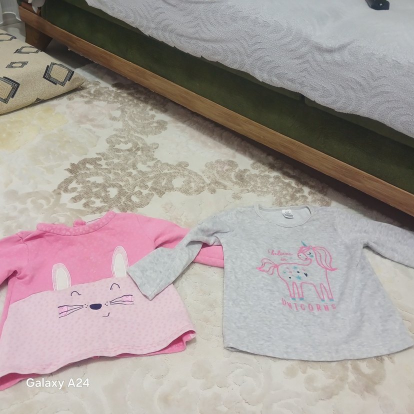 Örgü dokulu, baskılı desenli, uzun kollu kız çocuk tişörtü. Rahat kesimli, yumuşak ve sıcak kumaştan, pembe ve gri tonlarda.