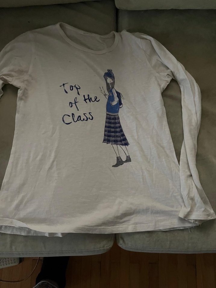 Pamuk kumaştan, bol kesim, uzun kollu kız çocuk tişörtü. Bisiklet yaka ve baskılı 'Top of the Class' yazısı ile rahat ve şık görünüyor.
