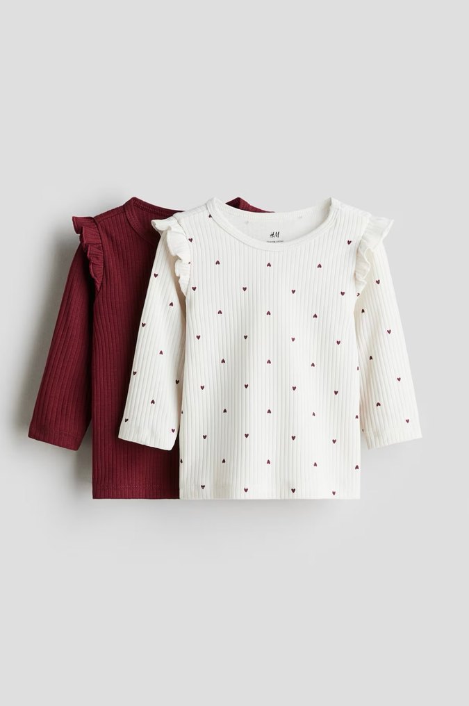 Pamuklu, uzun kollu, fırfırlı omuz detaylı, beyaz ve hafif batik desenli kız çocuk tişörtü. 1 kez giyilmiştir beyazlı olan