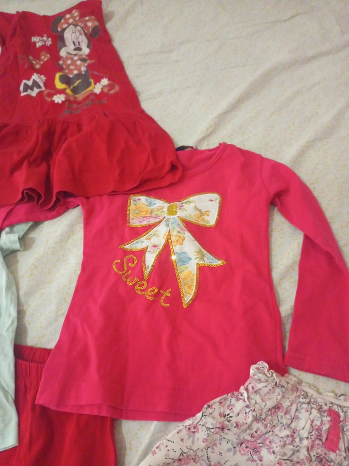 Fiyonklu baskılı, kırmızı renkli, uzun kollu ve dar kesim kız çocuk tişörtü, yumuşak tekstil kumaştan, bisiklet yaka ile.