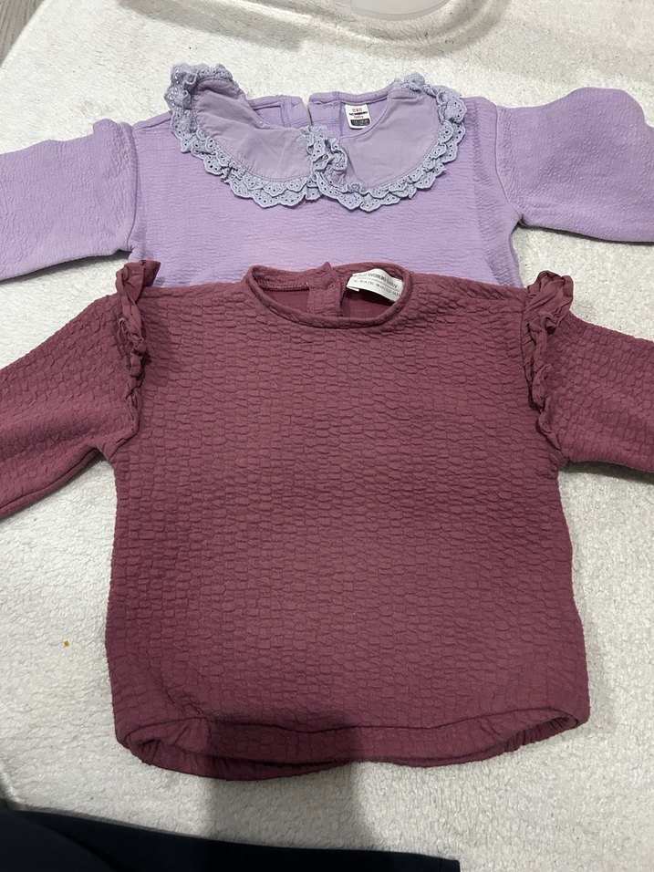 Kız çocuk bluz, uzun kollu, yuvarlak yakalı ve fırfırlı detaylıdır. Nakışlı, yumuşak triko kumaştan ve bol kesimdedir. Renkli mor tonlardadır.