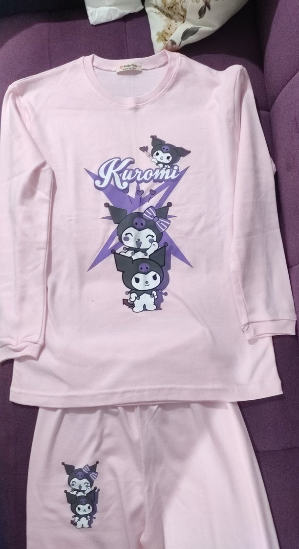 Fitted kesim, uzun kollu, yuvarlak yaka kız çocuk sweatshirtü, pastel pembe renkte Kuromi baskılıdır. Yumuşak örme kumaştan yapılmıştır ve rahat şık bir görünüm sunar.