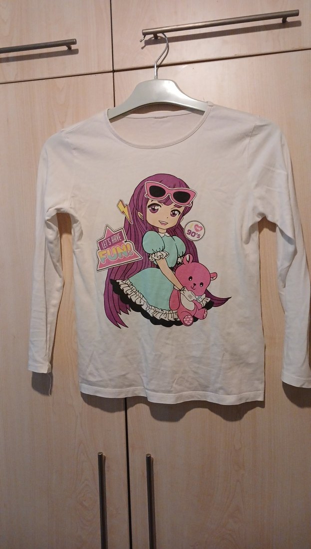 Pembe renkli, uzun kollu kız çocuk tişörtü, rahat kesim ve baskılı pop kültür deseniyle dikkat çeker. Pamuklu yumuşak kumaştan, yuvarlak yakalıdır.