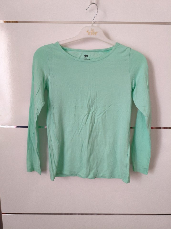 Kız çocuk tişörtü, uzun kollu ve yuvarlak yakalıdır. Pamuklu, pastel yeşil renkte ve bol kesimdir. Sokak stili için sade ve rahat bir seçenektir.