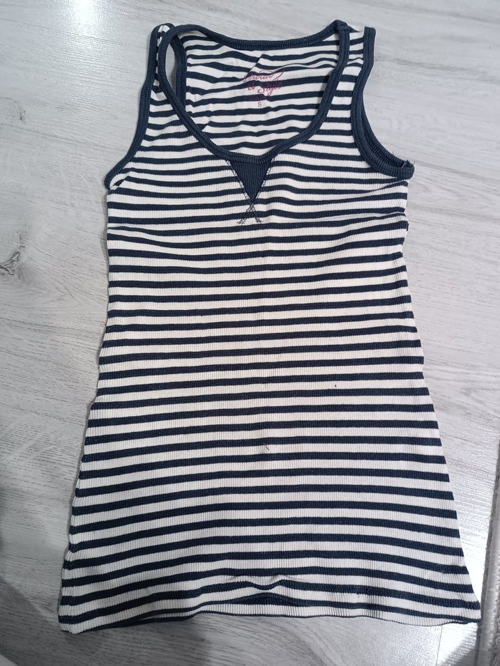Kız çocukları için ince kesim, V yaka ve siyah beyaz yatay çizgili, yumuşak sentetik kumaştan üretilmiş, sokak stili için uygun kolsuz atlet.