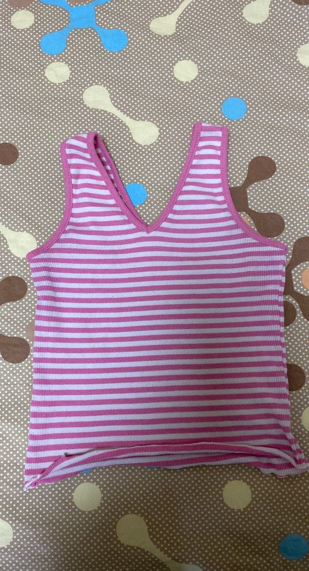 Kız çocuklar için V yaka, dantelli, pembe çizgili ve fit kesim atlet. Yumuşak sentetik kumaştan, pastel renklerde, şık sokak stili için uygun.