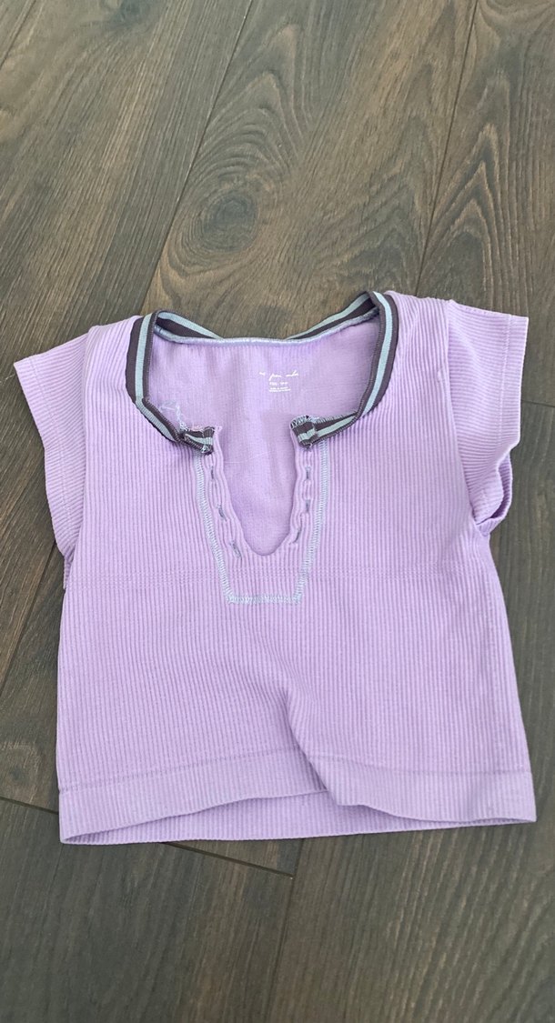 Spor V Yaka Düğmeli Mor Tişört s beden