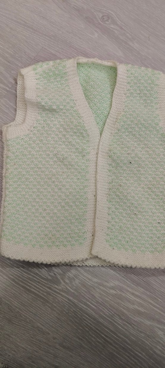 Kız çocuklar için pastel beyaz renkte, V yaka ve regular fit kesimde, örme dokulu kolsuz süveter.
