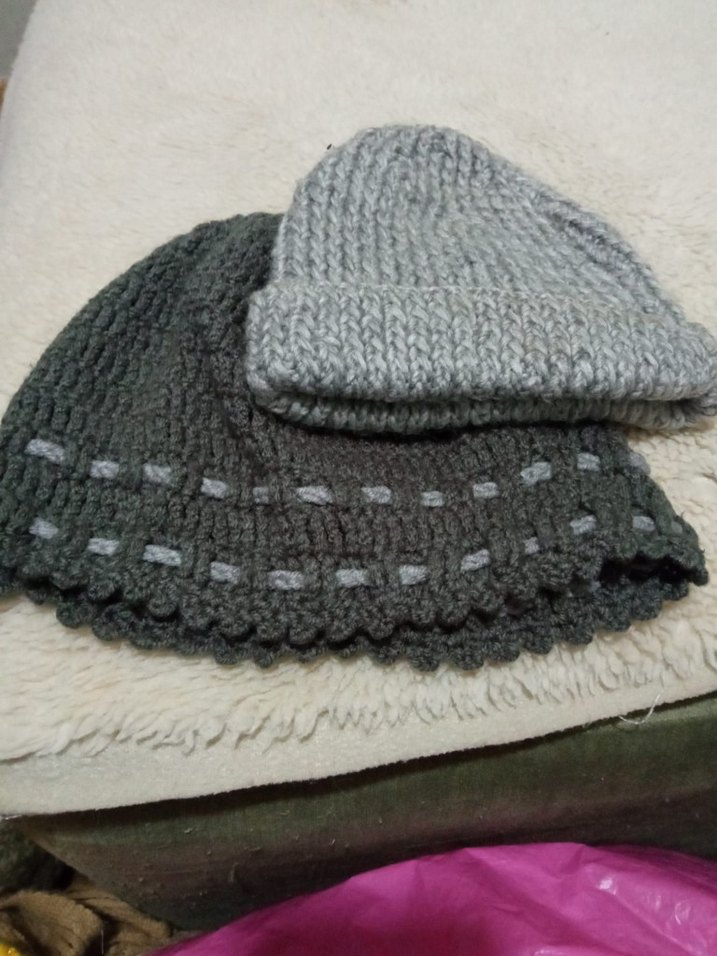 1 adet kız çocuğu 1 adet erkek çocuğu beresi el örgüsü yeni gri bere de örmede hata var yaşlı Annem ördü ama ilmek kaçması yok Lütfen bilerek alın